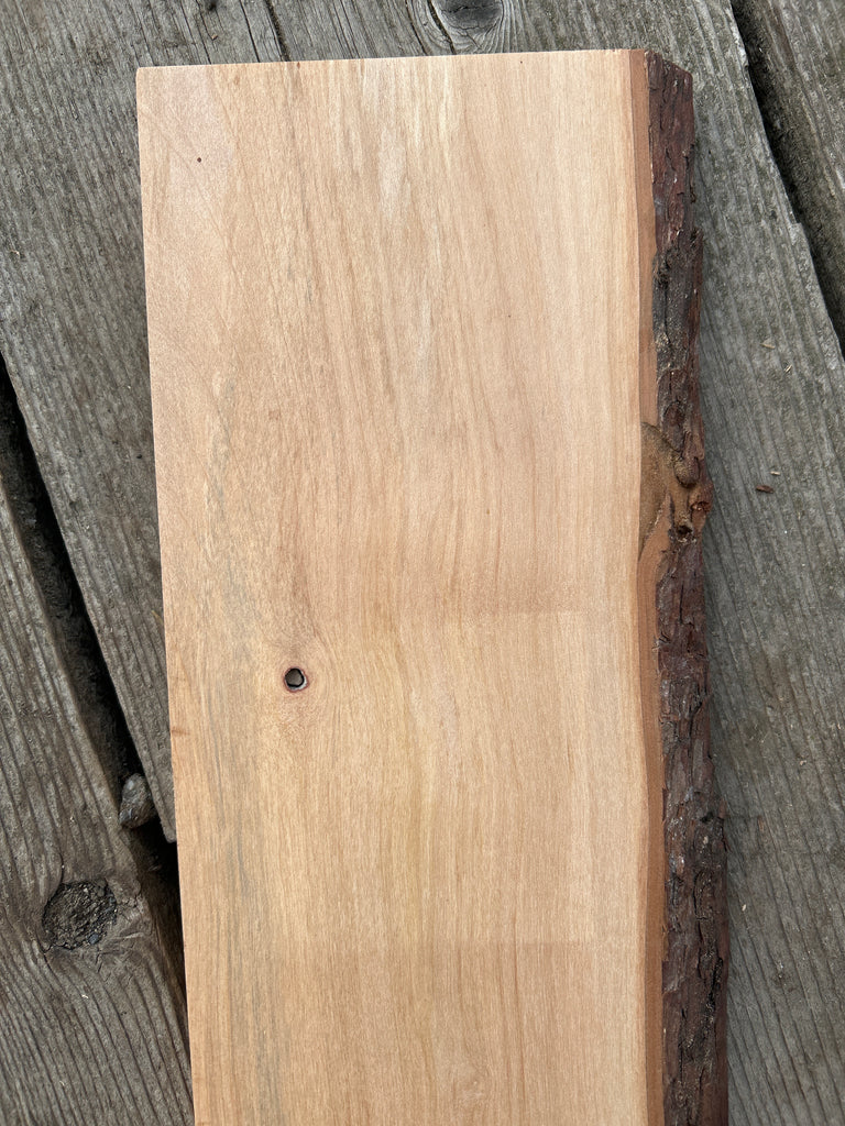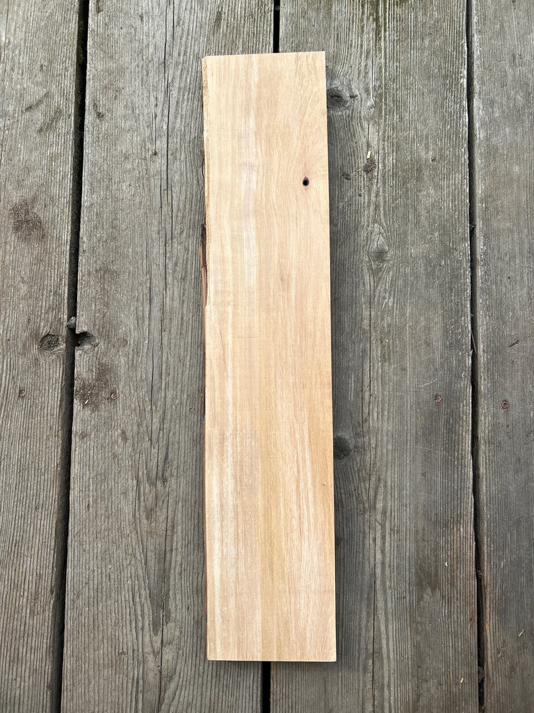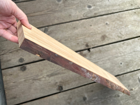 This board offers excellent versatility -- ideal for use as an art plaque, statement shelf, charcuterie board, or small furniture feature. It could also be resawn or cut down for a variety of other uses such as segmented turning, knife scales, or contrasting strips in cutting boards.
