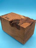 Mesquite Block M-1105 2.4" x 2.5" x 4.4" 0.8 lbs. This is a beautiful end-grain block of Texas-grown Honey Mesquite. The color is the rich, reddish-brown of Mesquite heartwood with some creamy beige sapwood and dark-chocolate bark. It is moderately burly and chatoyant. This block has been fully air-dried to 10-12% moisture content. The grain appears to be curving and complex throughout. This block has plenty of character. There are several open voids in the block that appear to be during-growth openings, rather than drying cracks. You may wish to use epoxy or CA glue to fill these prior to turning. This is an awesome block, probably best for very sharp tools and an experienced hand. |