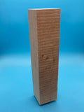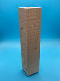 | Silver Maple Block SM-239 2.1" x 2.1" x 9.3" 0.8 lbs. This is an attractive spindle of Texas-grown Silver Maple. It has an overall light golden tone to the wood with a fine, even grain texture. There are faint brown stripes through the wood and occasional small knots. Most of the knots are 1/4" across or less. The grain runs long and more-or-less straight, parallel to the long axis of each spindle. This wood has been fully air-dried to 10-12% moisture content. Please scroll down below the first several photos to see all images. This block has a few end-grain cracks that you may wish to secure with CA glue prior to turning. |